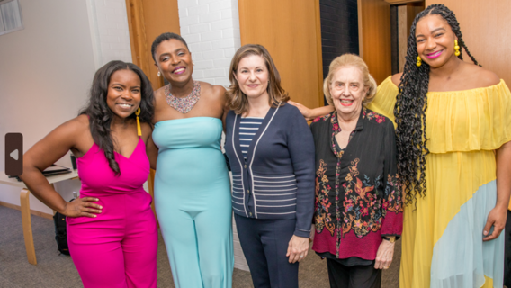 Pictured left to right Sunday, Feb. 25, 2024 at NCMA are Kendall Isadore, Élise Sharp, NCMA CEO Valerie Hillings, Event Sponsor Mary J. C. "Jo" Cresimore & Dawn Johnson (The String Queens).